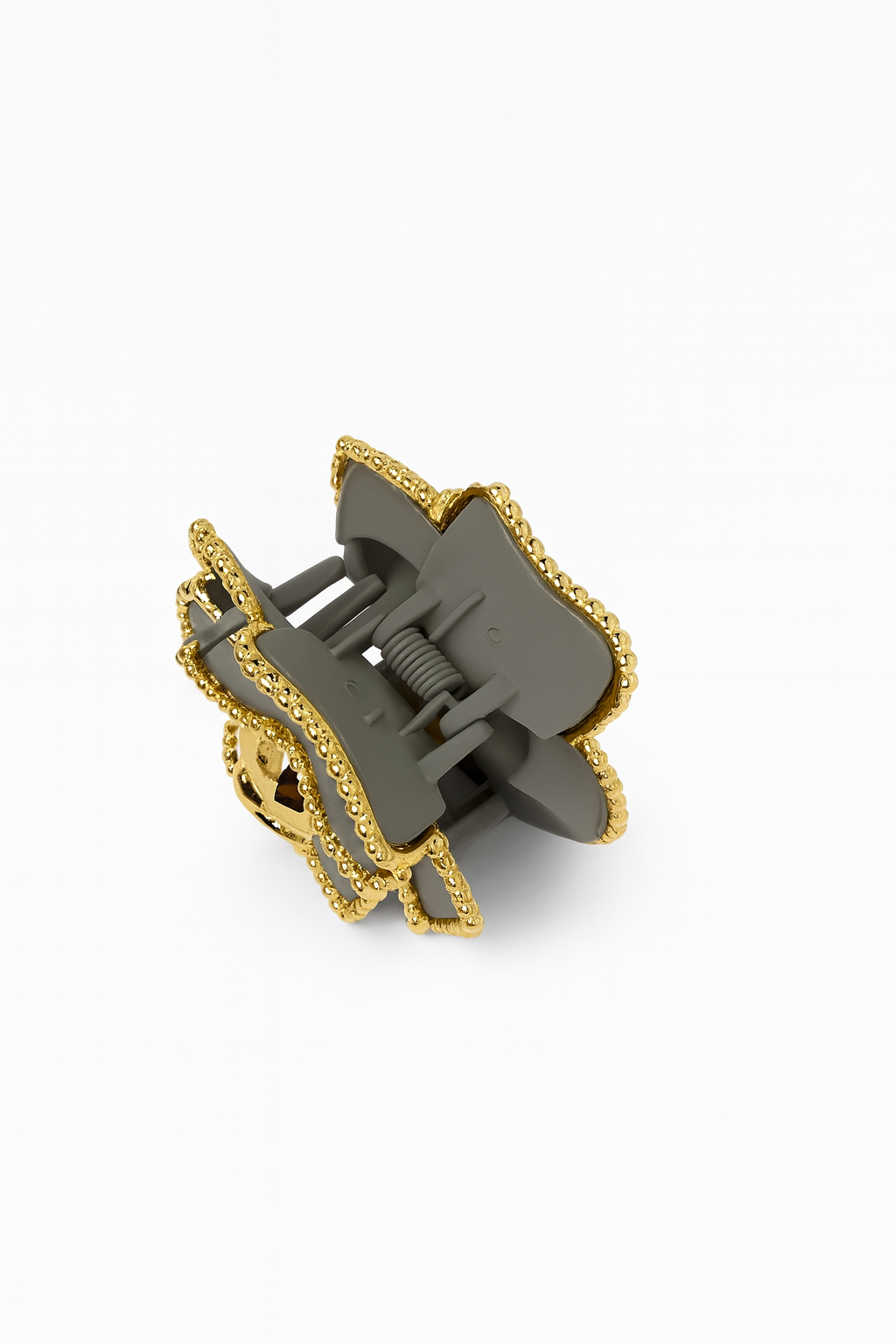 De goud afgewerkte randen, de subtiele hartvormige kern en de chique grey petals maken dit item een echte statement piece.